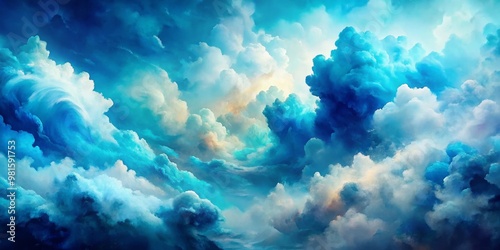 Abstract Sky Painting with Vivid Blues and Whites, Cloudscape , Watercolor, Fantasy
