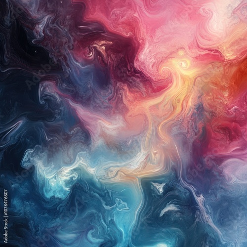 Abstract Swirling Liquid Pattern in Blue, Red, and Yellow Hues