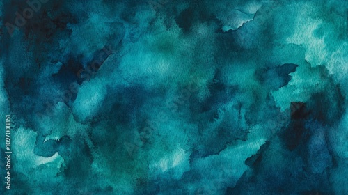 Abstract teal watercolor wash texture background.