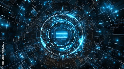 tunnel, glowing, abstract, technology, circular, design, blue, digital, light, network, futuristic, datum, communication, connection, circuit, stream, artificial intelligence, ai, innovation, structure, cyber, information, speed, portal, motion, science, space, element, energy, virtual, render, art, illustration, background, concept, graphic, modern, telecom