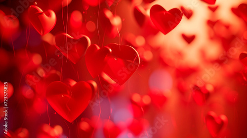 Abstract Valentine's Day red beautiful background with hearts and blurred bokeh lights. Valentine or love concept background wallpaper.