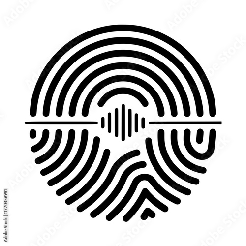 vector, fingerprint, biometric, authentication, security, logotype, icon, abstract, audio, equalizer, spectrum, verification, technology, cyber, data protection, modern, line art, simple, minimal, circle, round, design, template, identification, personal, privacy, scan, access, system, future, graphic, illustration
