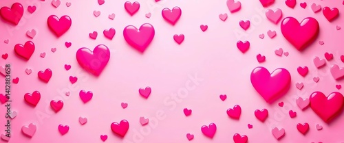 Abstract vector pink background with scattered hearts of varying sizes, romance, pattern