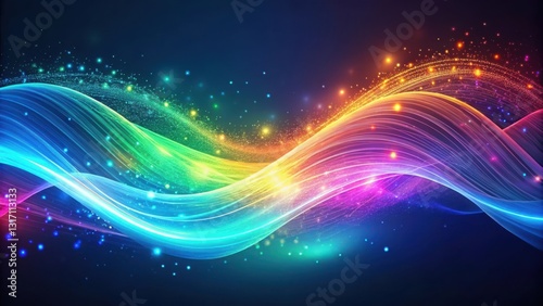 Abstract Vibrant Rainbow Wave Background with Sparkling Dust and Glowing Particles