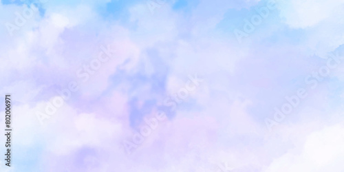 Abstract watercolor background . Grunge wallpaper of blue sky with white clouds . Summer heaven bright cloudscape .
