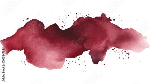 Abstract watercolor splash in deep red tones, showcasing artistic brush strokes and texture on a clean white background