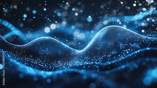 Abstract wave composed of dots and woven lines Network connectivity framework Stream of big data technology represented through an animated blue background of dynamic particles