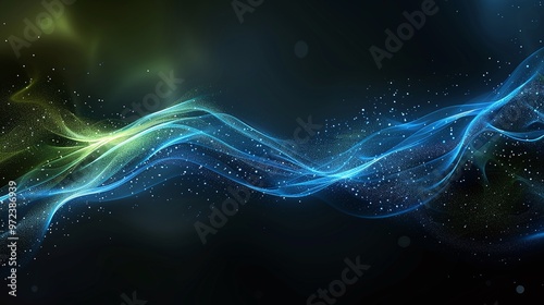 Abstract wave design featuring vibrant blue and green colors on a dark background, perfect for modern graphics and presentations. Product presentation background.