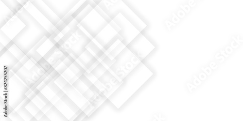 Abstract white background design with layers of textured white transparent material in triangle and squares shapes. White color technology concept geometric line vector white light grey background.