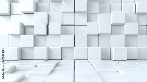 Abstract white cubes background creating depth and perspective in a modern and minimalist style with clean lines.