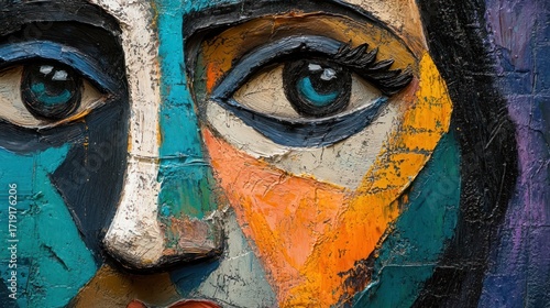 Abstract woman's face, colorful expression, close-up art