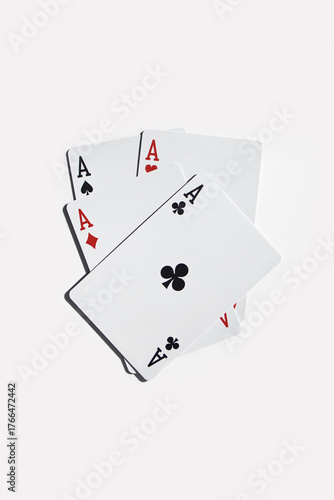 ace, playing card, poker, game, gambling, casino, card, winning, jackpot, success, chance, luck, risk, white background, isolated, studio shot, topview, copy space, minimalism, abstract, leisure, entertainment, hobby, bet, trick, magic, hand, deck, single object, group, simple, clean, graphic, design, shadow, contrast, cut-out, nobody