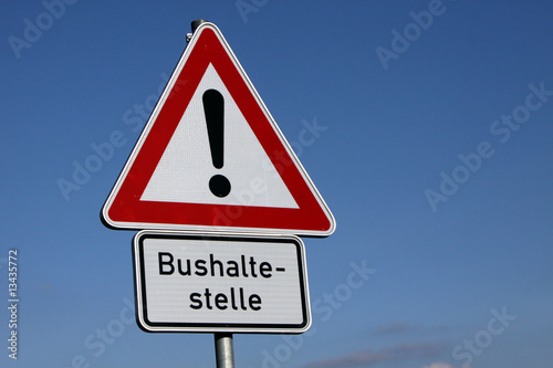 attention, bus stop, stop, caution, roadsign, roadsign, information board, plate, signs, roadsign, roadsign, communication, road traffic, exclamation mark, triangle, red, black, white