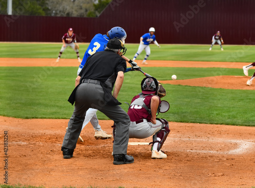 Action photo of high school baseball players making amazing plays during a baseball game