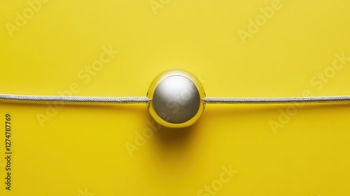Adjustable silver bolo bracelet with a smooth slider, arranged on a bold yellow backdrop