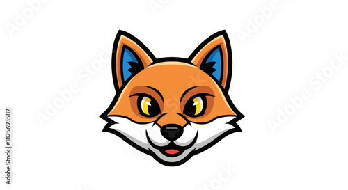 fox, head, cartoon, orange, white, black, blue, eye, ear, smile, happy, face, cute, design, graphic, illustration, animal, mammal, wildlife, friendly, playful, mascot, logotype, emblem, symbol, cheerful, vibrant, fun, art, character, stylised, bold, contour, fur, expression, detail, clean, simple, vector, template, shape, isolated, portrait, modern, graphic design, icon