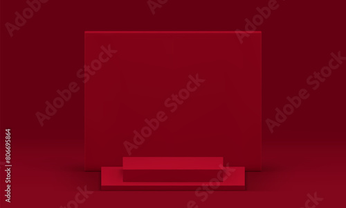 three-dimensional, dais, pedestal, red, cosmetic, display, platform, product, realistic, rendering, room, show, stage, racked, geometric, scene, empty, shape, showroom, studio, fashion, wall, render, presentation, banner, background, template, blank, vector, illustration, design, interior, showcase, poster, form, space, decoration, commercial, composition, advertising, floor, squared, minimalist, aesthetic, rectangle