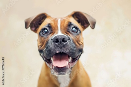 Adorable Boxer with a joyful and happy expression, perfect for an animal banner The cute dog portrait