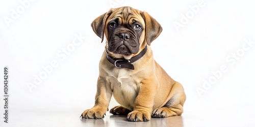 Adorable Bullmastiff Puppy Sitting on White, Sweet Dog Portrait, Cute Canine