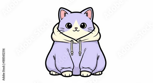 Adorable Cartoon Cat Character Wearing a Purple Hoodie Sweater
