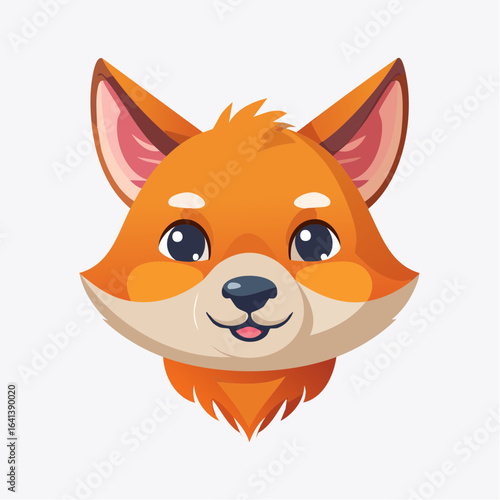 Adorable Cartoon Fox Head with Big Eyes and Friendly Expression on a White Background
