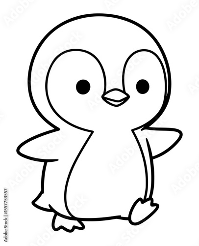 Adorable Cartoon Penguin Illustration in Black and White Outline Style
