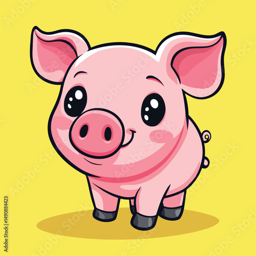 baby pig, pig, cartoon, cute, adorable, happy, cheerful, smiling, pink, large, eye, expressive, illustration, animal, farm, swine, farm animal, character, friendly, joyful, sweet, charming, innocent, playful, funny, whimsical, graphic, design, art, drawing, image, mascot, icon, symbol, vector, clip, style, manga, anime, childish, toddler, baby, children, youth, fun, delight, happiness