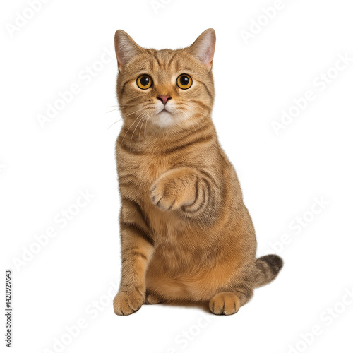 Adorable Cat Asking for Attention: A curious, golden-brown cat with striking eyes sits and extends a paw as if requesting interaction, captured in a studio setting.