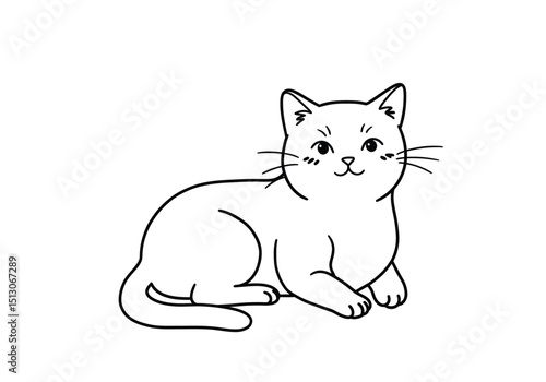 Adorable cat drawing. It is a black and white outline image of a cute feline, a domestic animal known for its charm and gentle nature. Vector sketch line art draw.