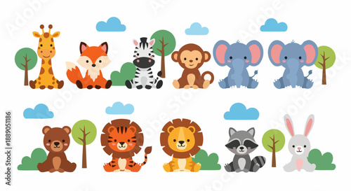 animal, baby, jungle, safari, cartoon, cute, giraffe, fox, zebra, monkey, elephant, bear, tiger, lion, raccoon, rabbit, wildlife, adorable, childish, playful, illustration, character, mammal, fauna, creature, sweet, charming, friendly, happy, smiling, forest, timberland, nature, exotic, tropical, infant, young, newborn, toddler, childcare center