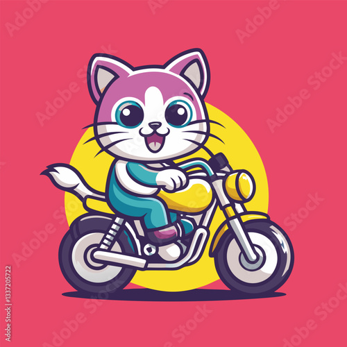 Adorable Feline on a Motorcycle: Vector Mascot Character