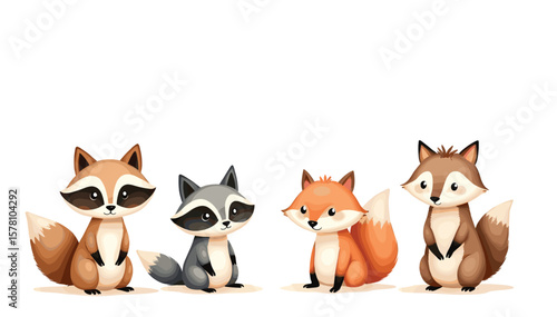 Adorable Forest Animals Lined Up Together