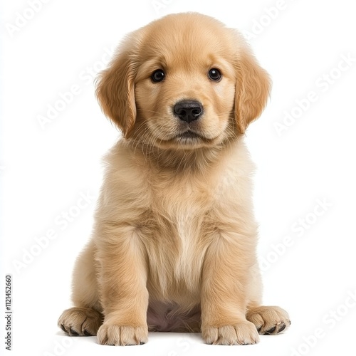Adorable Golden Retriever Puppy Sitting on White Background
