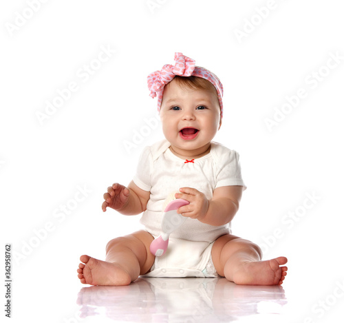 infant, children, baby, happy, smiling, positive, girl, female, daughter, cute, white, little, children, sitting, smile, decoration, stylish, bow, toy, holding, studio, face, laugh, childhood, happiness, sweet, healthy, joy, fun, body, jumpsuit, human, person, care, family, portrait, pretty, innocence, expression, emotion, cheerful, newborn, floor, love, funny, barefoot beach, children, heel, toddler