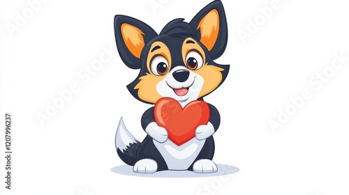 Adorable Puppy Holding Red Heart Showing Affection