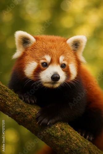"Adorable Red Panda Resting on Tree Branch in Natural Forest Habitat, Wildlife Conservation, Endangered Species Cute Animal Portrai Nature Photography, Asian Wilderness, Ecology Awareness, Furry