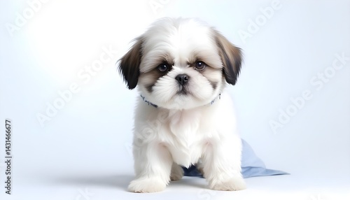 Adorable Shih Tzu Dog Portrait with Fluffy Coat on Clean Background
