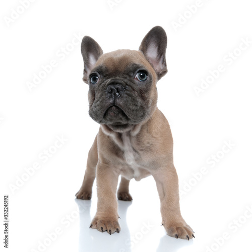 dog, doggy, puppy, pet, animal, french bulldog, french, bulldog, bully, little, small, baby, baby animal, baby animal, white, background, cute, adorable, looking, isolated, standing, up, curious, eager