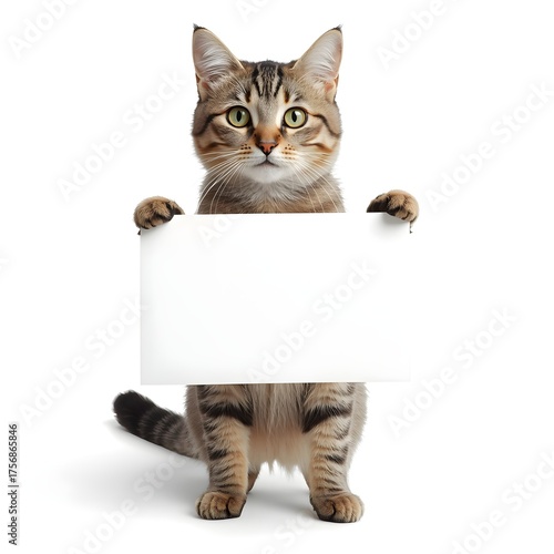 cat, tabby, striped, adorable, cute, funny, pet, animal, domestic, white, background, isolated, signs, poster, banner, paper, blank, concept, message, communication, furry, creative, minimal, template, marketing, advertising, copy space, clean, studio, domestic cat, bright, white space
