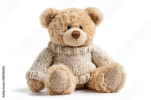 teddy bear, plush toy, stuffed animal, cuddly, soft, cute, adorable, bear, toy, childhood, baby, childcare center, comfort, warmth, cosy, sweater, knit up, beige, brown, playful, fun, happy, joy, gift, present, holiday, christmas, birthday, children, children, baby shower, announcement, design, product, marketing, advertising, branding, lifestyle, family, love, care, sweet, innocent, hug, cuddle, friendly, isolated, white background