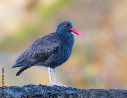 Adult Blackish Oystercatcher Perched on Shoreline Rock in Profile