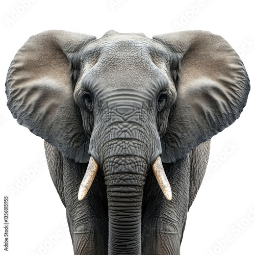 elephant, tusk, animal, nature, isolate, background, transparent, large, powerful, grey, africa, wild, giant, mammal, trunk, ear, skin, texture, massive, exotic, greatness, fauna, beast, standing, calm, gaze, frontal, portrait, impressive, symbol, strength, mature, experienced, noble, wise, majestic, huge, african, protection, solitude, stable, strong, gigantic, dominant, natural