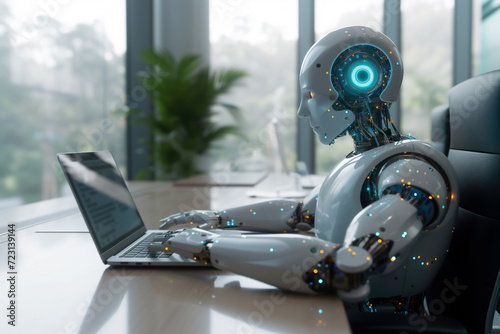 Advanced Robot Using Laptop in Modern Office