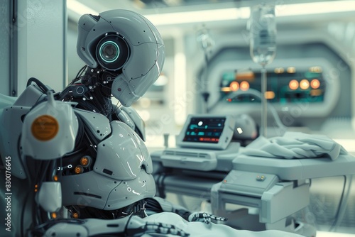 advanced, robot, assisting, futuristic, hospital, health care, technology, innovation, ai, robotic, surgery, automation, high technology, precision, intelligent, medicals, cutting edge, modern, smart