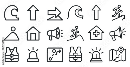 adventure, safety, outline, flat, solid, linear, vector, icon, set, navigation, map, direction, protection, emergency, equipment, sport, hike, exploration, alert, nature