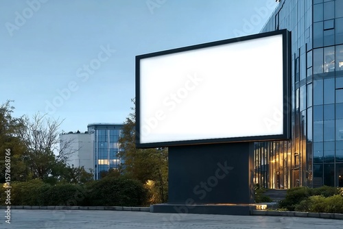Advertising biilboard mock-up in front of the modern office building