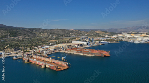 Aerial drone photo of old shipyard of Elefsina, Attica, Greece