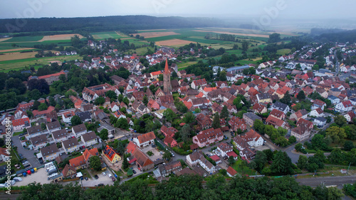 Aerial panorama view of the old town in the city Burgfarrnbach 90768 Fürth in bavaria in Germany on a cloudy day in spring