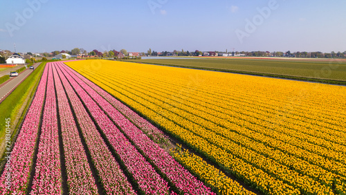 Aerial photo of tulip and flower fields in amsterdam, Holland, Netherlands