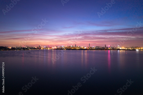 Aerial photography scenery of Wuhan East Lake of Hubei province,China.East Lake Scenic Area of Wuhan